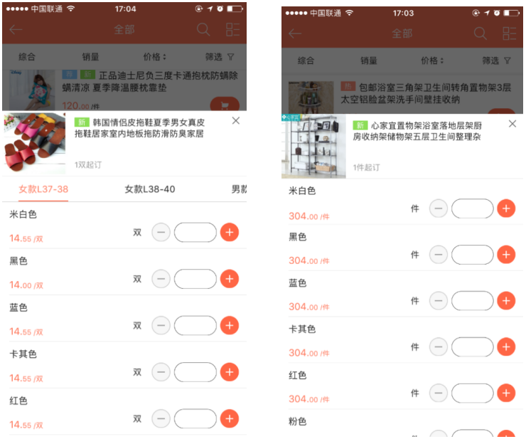 2.设置规格后,订货端根据后台设置的规格顺序展示相应规格