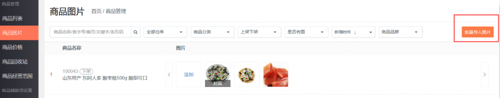 【商品】-【商品图片】-【快速上传商品图片】-【批量导入图片】